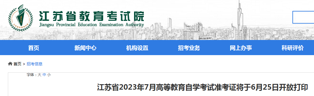 自考頻道從江蘇省教育考試院了解到,江蘇省2023年7月自學(xué)考試準(zhǔn)考證將于6月25日開放打印。詳情如下: