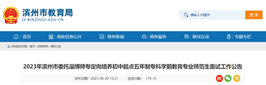 現(xiàn)將2023年濱州市委托淄博師專定向培養(yǎng)初中起點(diǎn)五年制??茖W(xué)前教育專業(yè)師范生(簡稱“定向培養(yǎng)師范生”)面試事宜公告如下:
