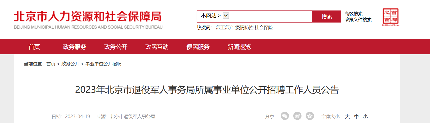 文章來源:http://rsj.beijing.gov.cn/xxgk/gkzp/202304/t20230419_3060193.html