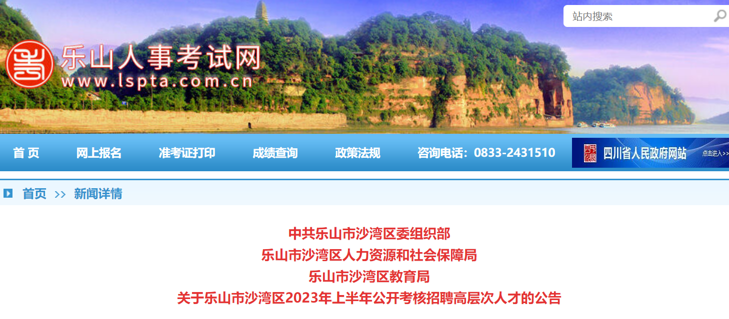 原文標題:中共樂山市沙灣區(qū)委組織部 樂山市沙灣區(qū)人力資源和社會保障局 樂山市沙灣區(qū)教育局關于樂山市沙灣區(qū)2023年上半年公開考核招聘高層次人才的公告