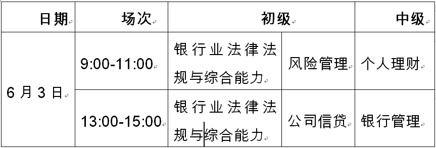 小編根據(jù)中國銀行業(yè)協(xié)會(huì)發(fā)布“2023年上半年銀行業(yè)專業(yè)人員初級(jí)和中級(jí)職業(yè)資格考試報(bào)名公告”得知,2023年上半年初級(jí)銀行從業(yè)資格考試時(shí)間為6月3日-6月4日,采用閉卷計(jì)算機(jī)化考試方式,考試科目如下: