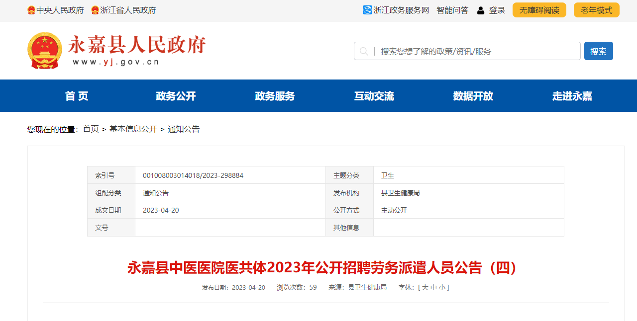 原文標(biāo)題:永嘉縣中醫(yī)醫(yī)院醫(yī)共體2023年公開(kāi)招聘勞務(wù)派遣人員公告(四)