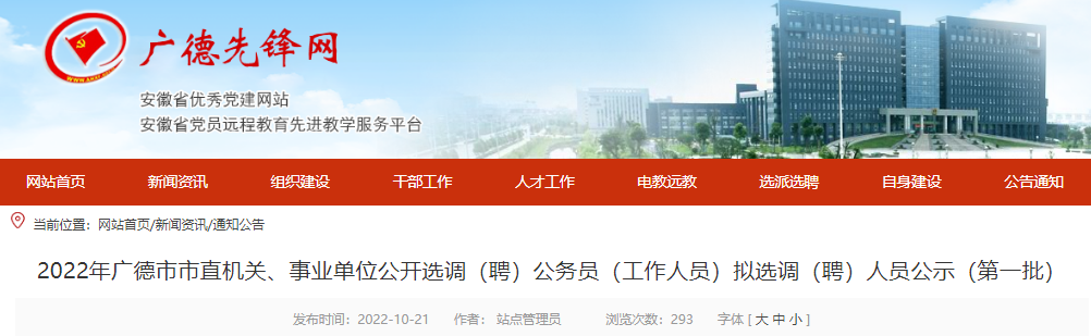 原文標(biāo)題:2022年廣德市市直機(jī)關(guān)、事業(yè)單位公開選調(diào)(聘)公務(wù)員(工作人員)擬選調(diào)(聘)人員公示(第一批)