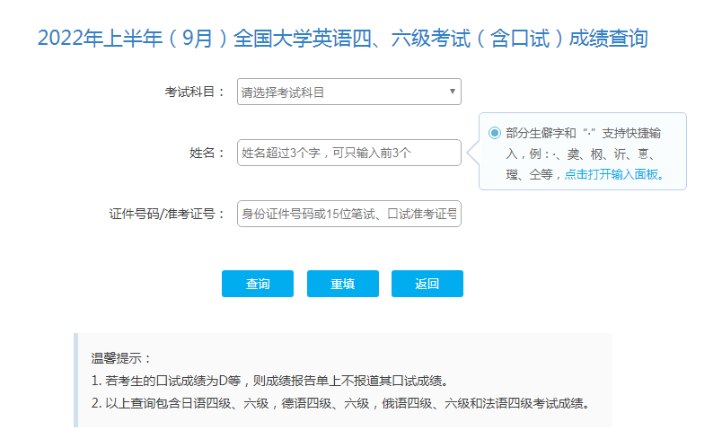 點(diǎn)擊進(jìn)入>>>2022年9月山西英語四級(jí)成績(jī)查詢?nèi)肟?/u>