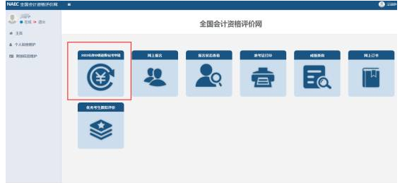 登錄后,首頁會顯示“2022年度中級退費/延考申請”按鈕。如下圖所示: