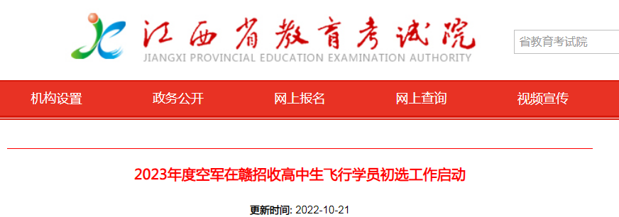 從江西省教育考試院了解到,江西2023年度空軍在贛招收高中生飛行學(xué)員初選工作啟動,詳細(xì)內(nèi)容如下: