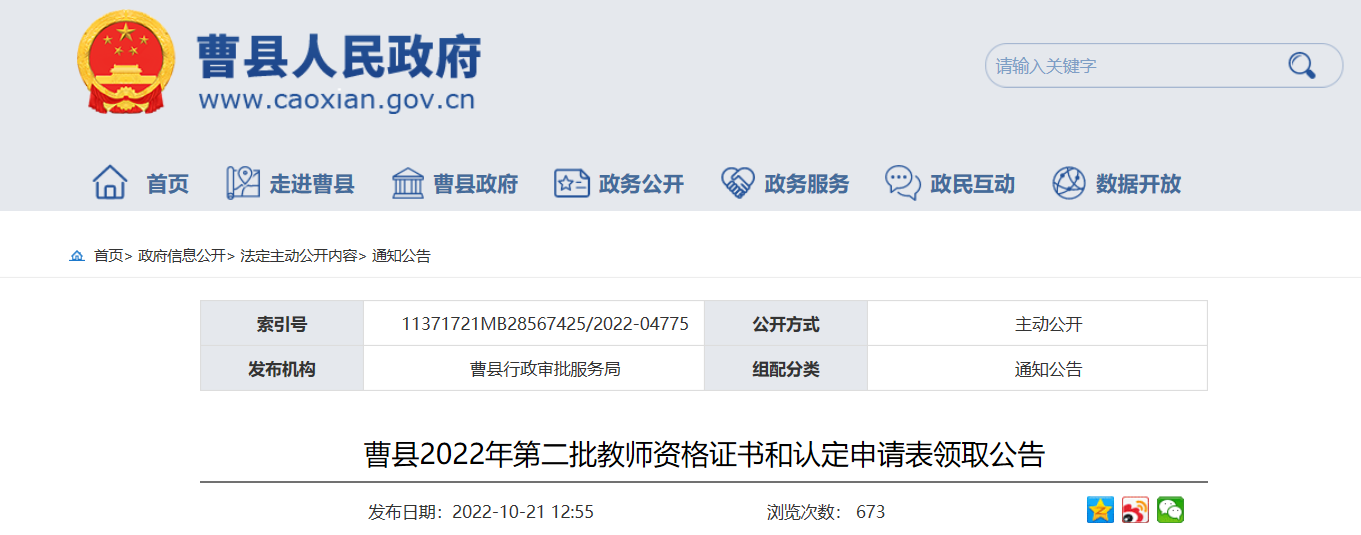 原文標題:曹縣2022年第二批教師資格證書和認定申請表領取公告