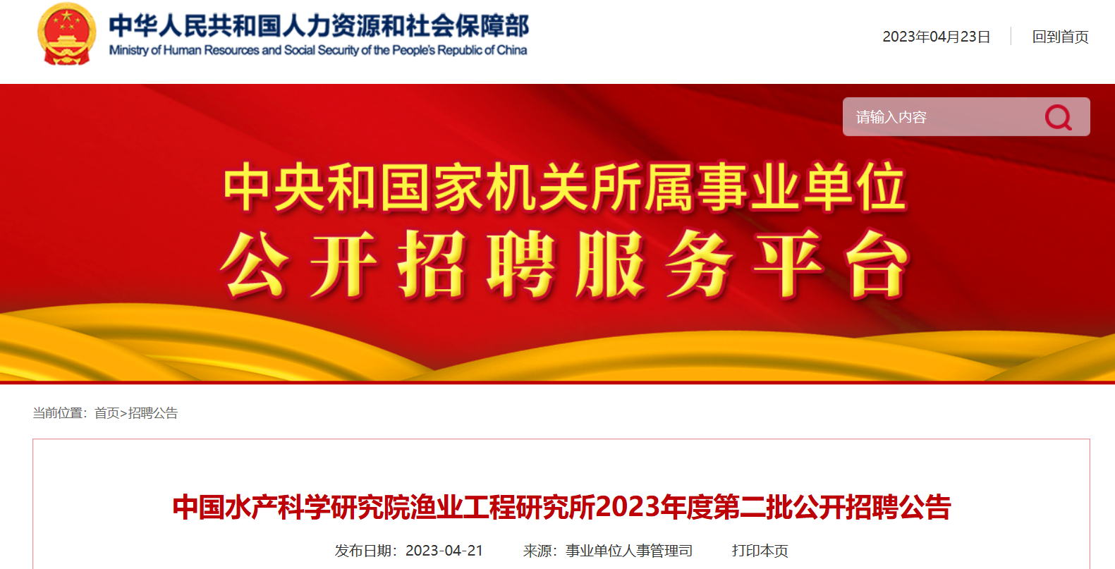 2023年北京中國水產(chǎn)科學(xué)研究院漁業(yè)工程研究所第二批招聘工作人員。報(bào)名時(shí)間自即日起至2023年5月21日?,F(xiàn)將公告原文發(fā)布如下: