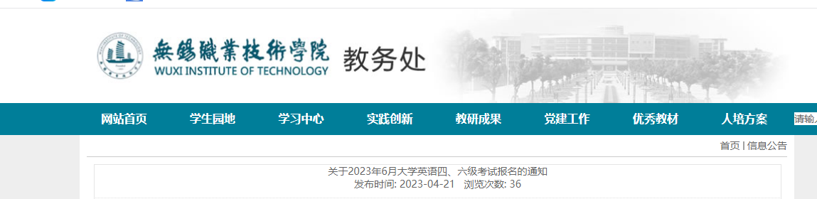 從無錫職業(yè)技術學院教務處獲悉,2023年6月江蘇無錫職業(yè)技術學院英語四、六級考試報名通知已公布,報名時間4月27日起,具體詳情如下: