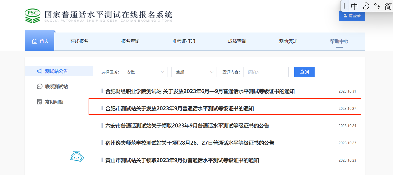 從國家普通話水平測試在線報名系統(tǒng)獲悉,2023年9月安徽合肥普通話水平測試等級證書發(fā)放通知已公布,請相關(guān)人員仔細閱讀,具體詳情如下: