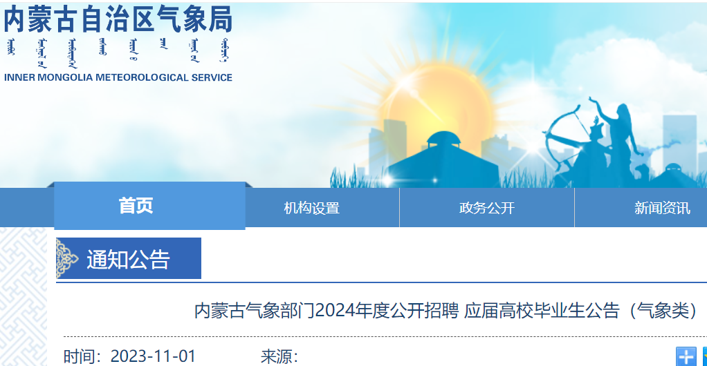 按照《氣象部門事業(yè)單位公開招聘人員管理辦法》有關要求,現(xiàn)就內蒙古氣象部門2024年度公開招聘氣象類專業(yè)應屆高校畢業(yè)生有關事項公告如下: