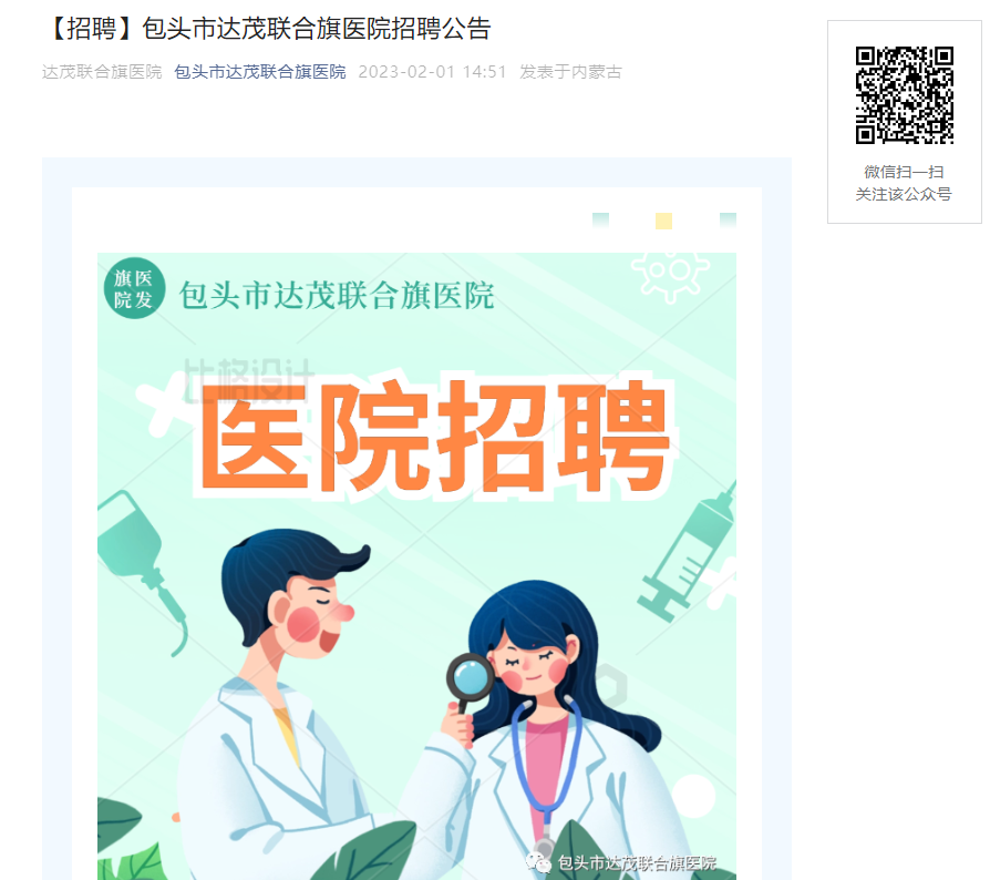 原文標(biāo)題:【招聘】包頭市達(dá)茂聯(lián)合旗醫(yī)院招聘公告