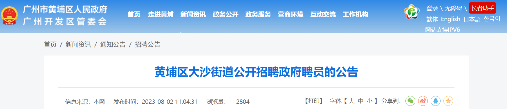 2023廣東省廣州市黃埔區(qū)大沙街道招聘政府聘員2人。報(bào)名時(shí)間:2023年8月2日—2023年8月4日。(工作日上午9:00-11:30,下午14:00-17:30)?,F(xiàn)將公告原文發(fā)布如下:
