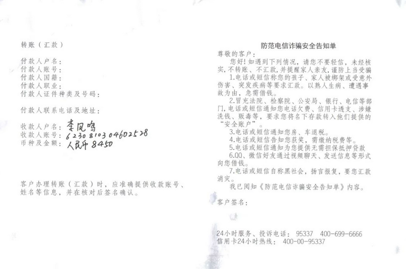 3.收款人:李鳳鳴