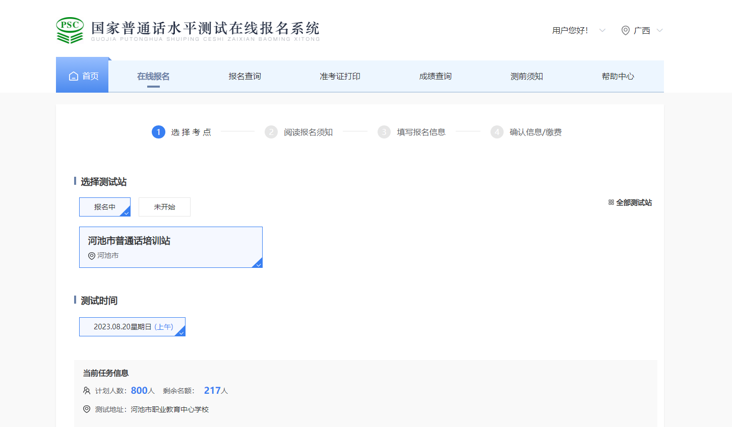 從國家普通話水平測試在線報(bào)名系統(tǒng)獲悉,2023年8月廣西河池市普通話報(bào)名時(shí)間及考試時(shí)間已公布,報(bào)名時(shí)間8月6日起,考試時(shí)間8月20日,具體詳情如下: