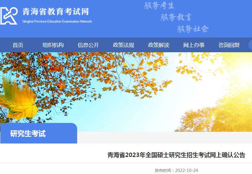 考研頻道從青海省教育考試網(wǎng)了解到,青海省2023年全國碩士研究生招生考試網(wǎng)上確認(rèn)公告已發(fā)布,詳情如下: