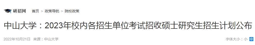 原文標(biāo)題:中山大學(xué):2023年校內(nèi)各招生單位考試招收碩士研究生招生計(jì)劃公布