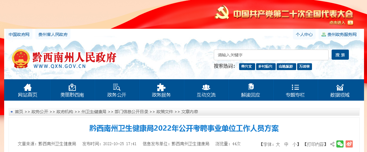 根據(jù)工作需要,公開考聘事業(yè)單位工作人員2名,詳見《黔西南州衛(wèi)生健康局2022年公開考聘事業(yè)單位工作人員職位一覽表》(附件1)。
