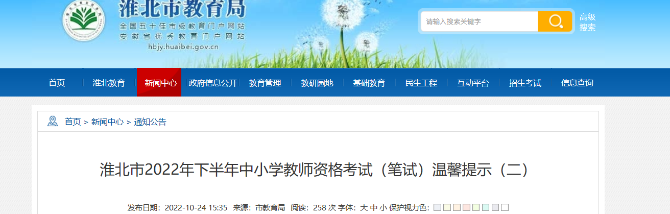 原文標題:淮北市2022年下半年中小學(xué)教師資格考試(筆試)溫馨提示(二)