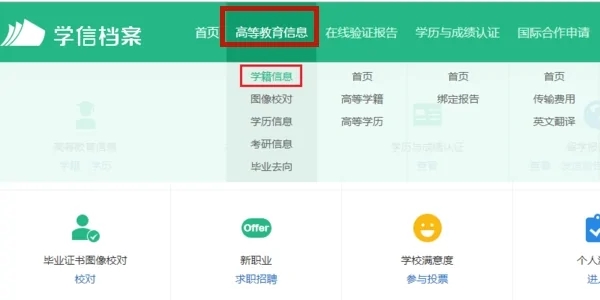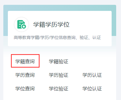 在首頁找到【學(xué)籍學(xué)歷學(xué)位】,然后在這個選項的下面找到【學(xué)籍查詢】,然后點擊【學(xué)籍查詢】選項;