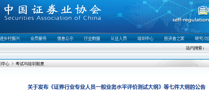 原文標題:關(guān)于發(fā)布《證券行業(yè)專業(yè)人員一般業(yè)務(wù)水平評價測試大綱》等七件大綱的公告