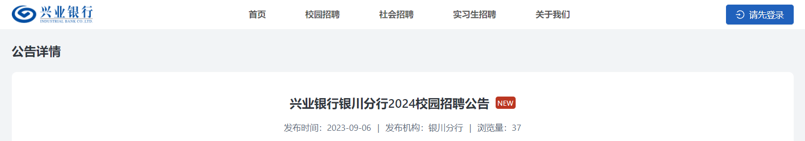 2024興業(yè)銀行寧夏銀川分行校園招聘公告已發(fā)布,現(xiàn)將招聘公告發(fā)布如下: