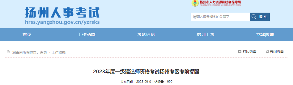 2023年江蘇揚州考區(qū)一級建造師資格考試考前提醒已公布,下面為您詳細介紹一下本次資格考試工作的具體事宜,希望廣大考生及時關(guān)注,如有相關(guān)疑問,請關(guān)注一級建造師考試頻道為您實時做出的更新。