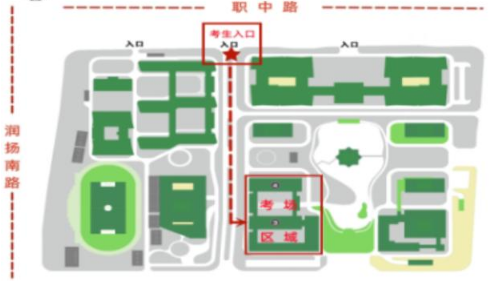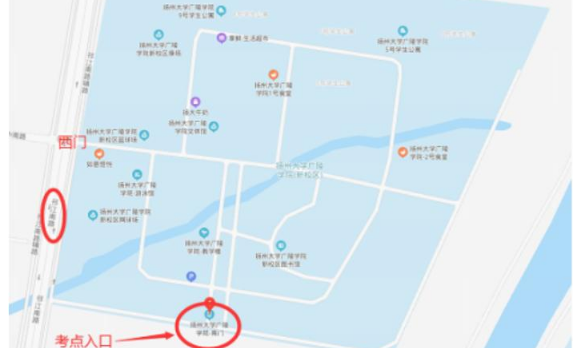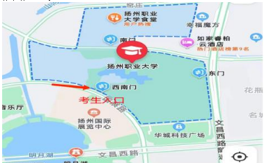 友情提示:請從揚州市職業(yè)大學(xué)西門(國展路,國展中心對面)進入,由于西門離考場有一段距離,請考生盡量提早到達考場所在教學(xué)樓,可乘坐101路公交車。