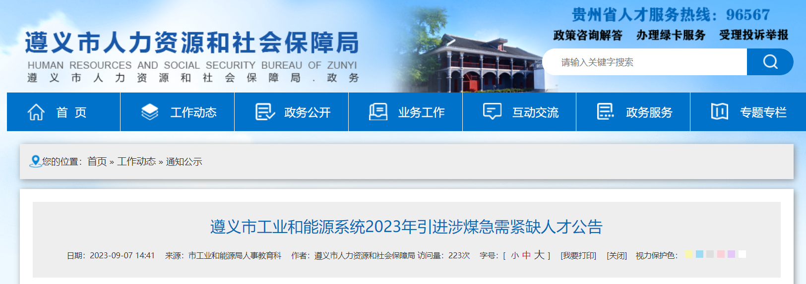 2023年貴州省遵義市工業(yè)和能源系統(tǒng)引進涉煤急需緊缺人才13人。報名時間為:2023年9月25日8:30--9月29日17:30。現(xiàn)將公告原文發(fā)布如下: