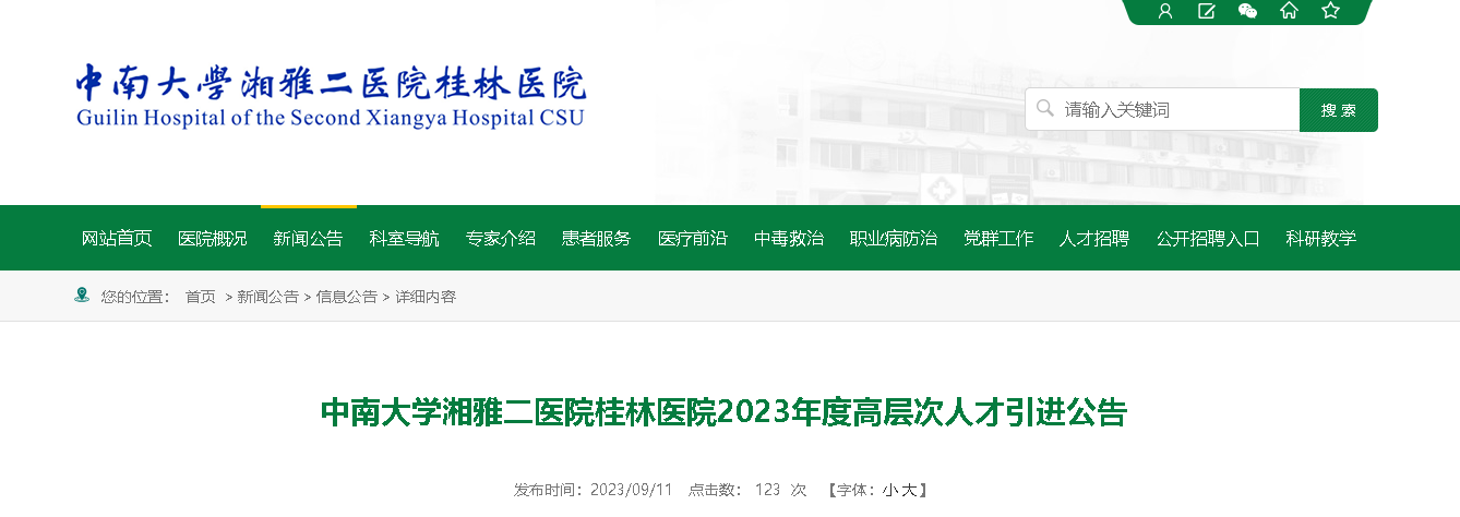 2023廣西中南大學湘雅二醫(yī)院桂林醫(yī)院高層次人才引進,電子郵箱:eyrsk2827220@163.com,現(xiàn)將招聘公告原文發(fā)布如下: