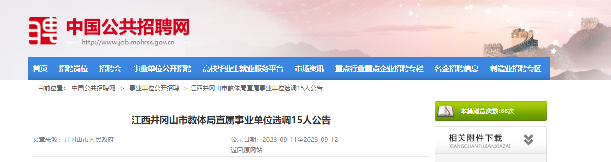 井岡山市教體局直屬事業(yè)單位工作人員15名。