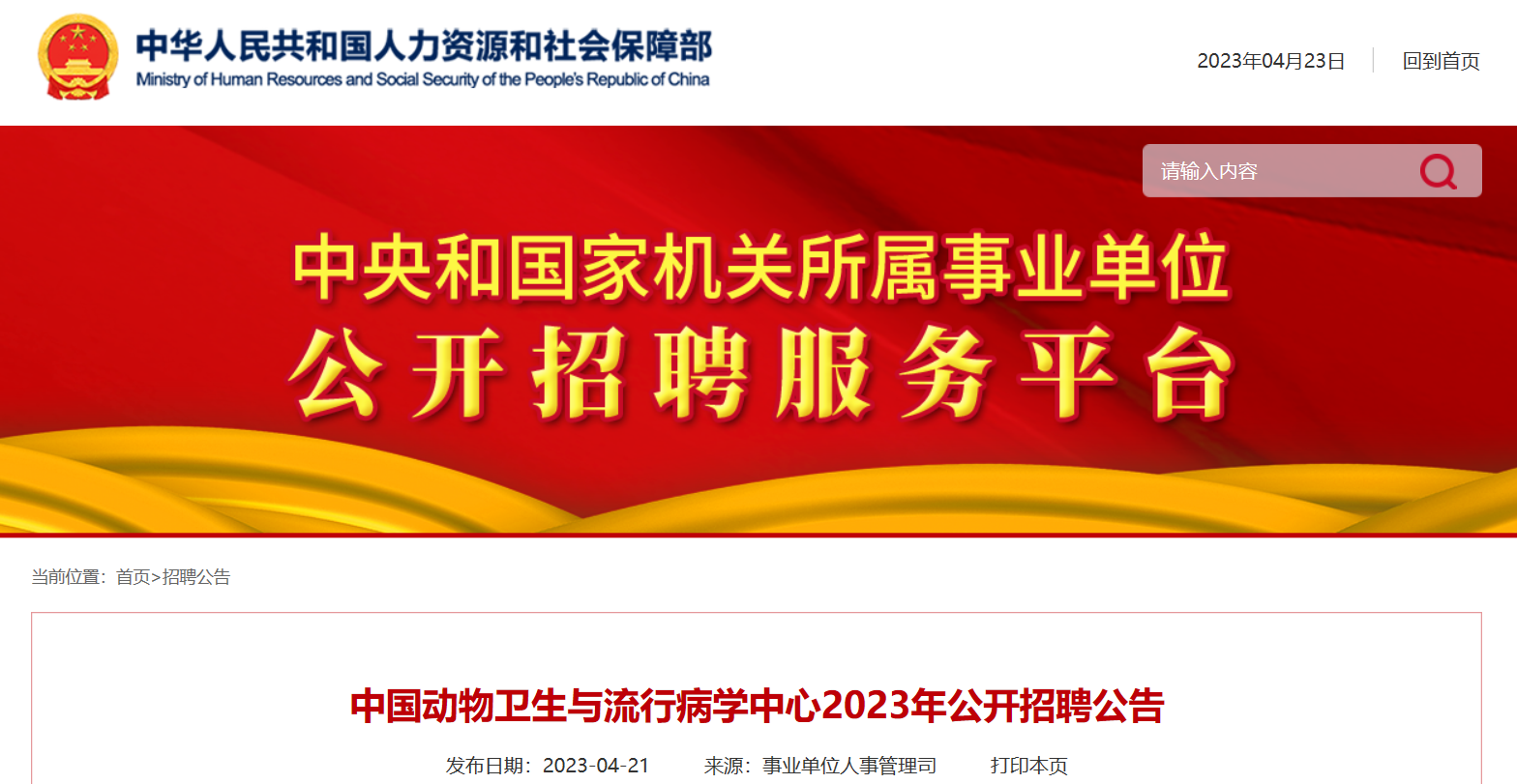 原文標(biāo)題:中國(guó)動(dòng)物衛(wèi)生與流行病學(xué)中心2023年公開(kāi)招聘公告
