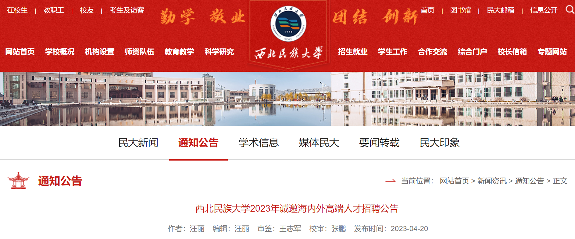 原文標(biāo)題:西北民族大學(xué)2023年誠邀海內(nèi)外高端人才招聘公告