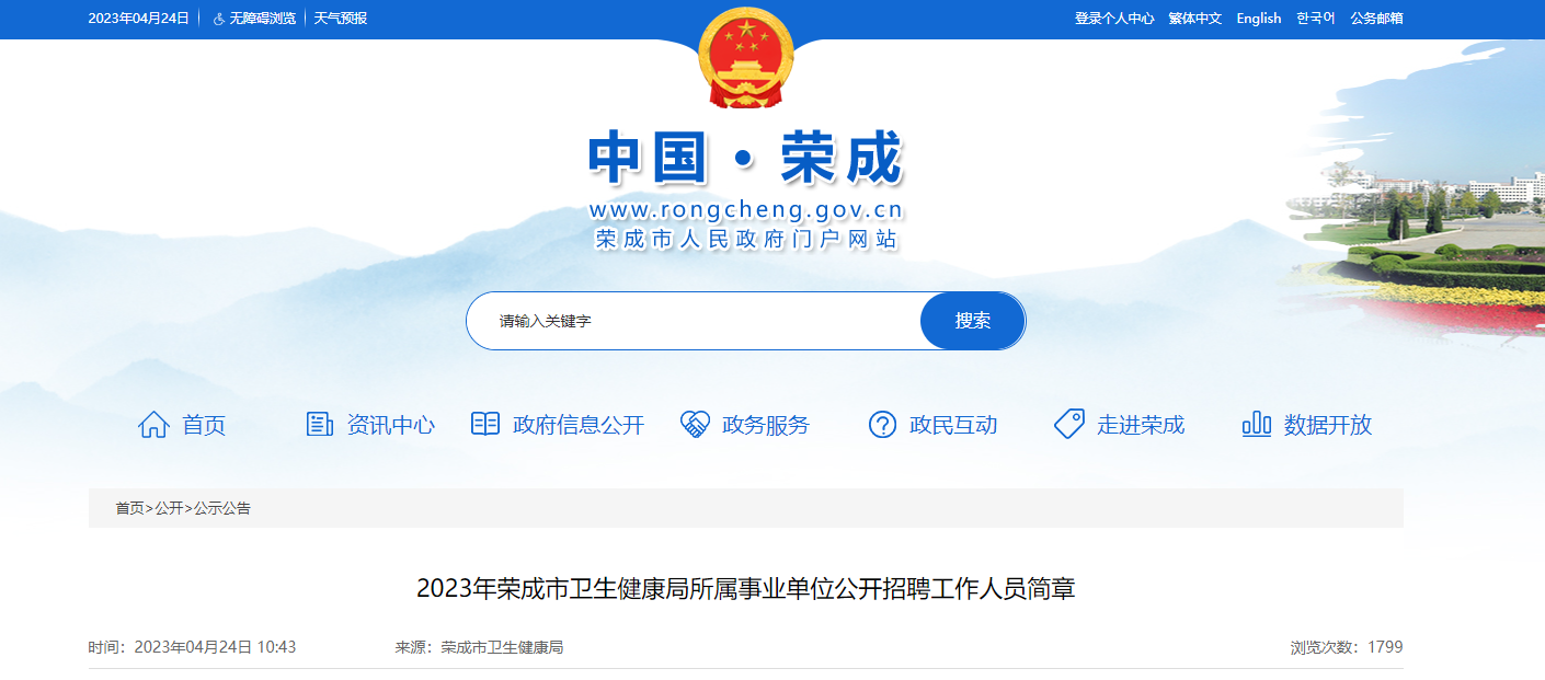 根據(jù)省、市事業(yè)單位公開招聘有關規(guī)定,現(xiàn)將2023年榮成市衛(wèi)生健康局所屬事業(yè)單位公開招聘工作人員有關事項公告如下: