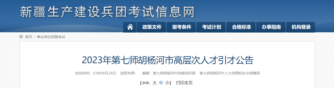 2023年新疆兵團(tuán)第七師胡楊河市高層次人才引才。報名時間:2023年4月25日至5月15日。現(xiàn)將公告原文發(fā)布如下: