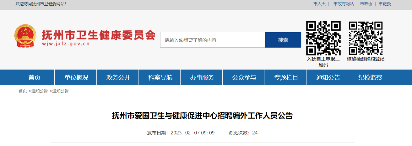 撫州市愛國衛(wèi)生與健康促進(jìn)中心面向社會公開招聘編外工作人員?,F(xiàn)將有關(guān)事項公告如下: