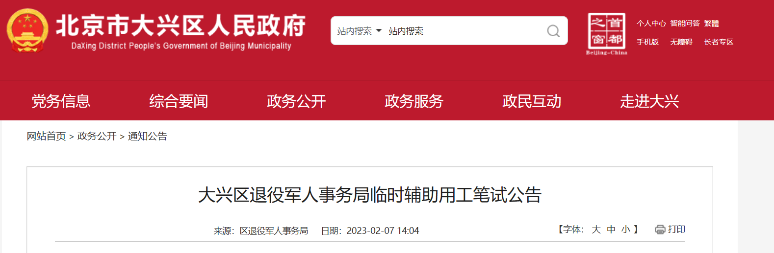 原文標題:大興區(qū)退役軍人事務局臨時輔助用工筆試公告
