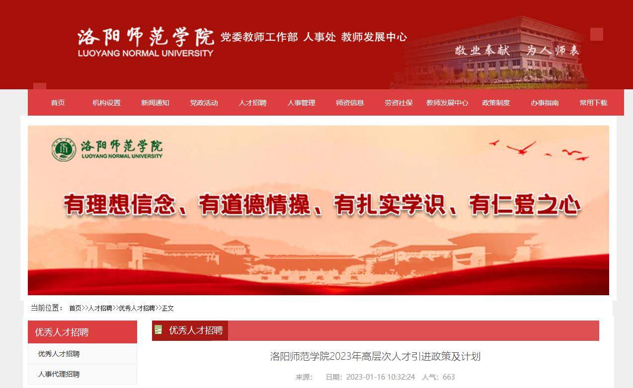 洛陽師范學(xué)院2023年人才引進(jìn)政策及計(jì)劃發(fā)布在洛陽師范學(xué)院網(wǎng)站(網(wǎng)址http://www.lynu.edu.cn/)和相關(guān)網(wǎng)站進(jìn)行宣傳。
