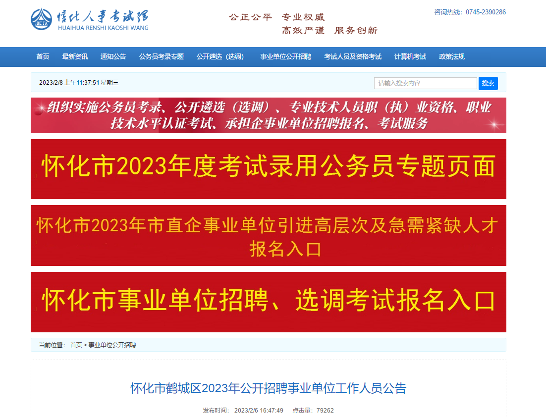 鶴城區(qū)人社局事業(yè)單位人事管理股0745-2107810