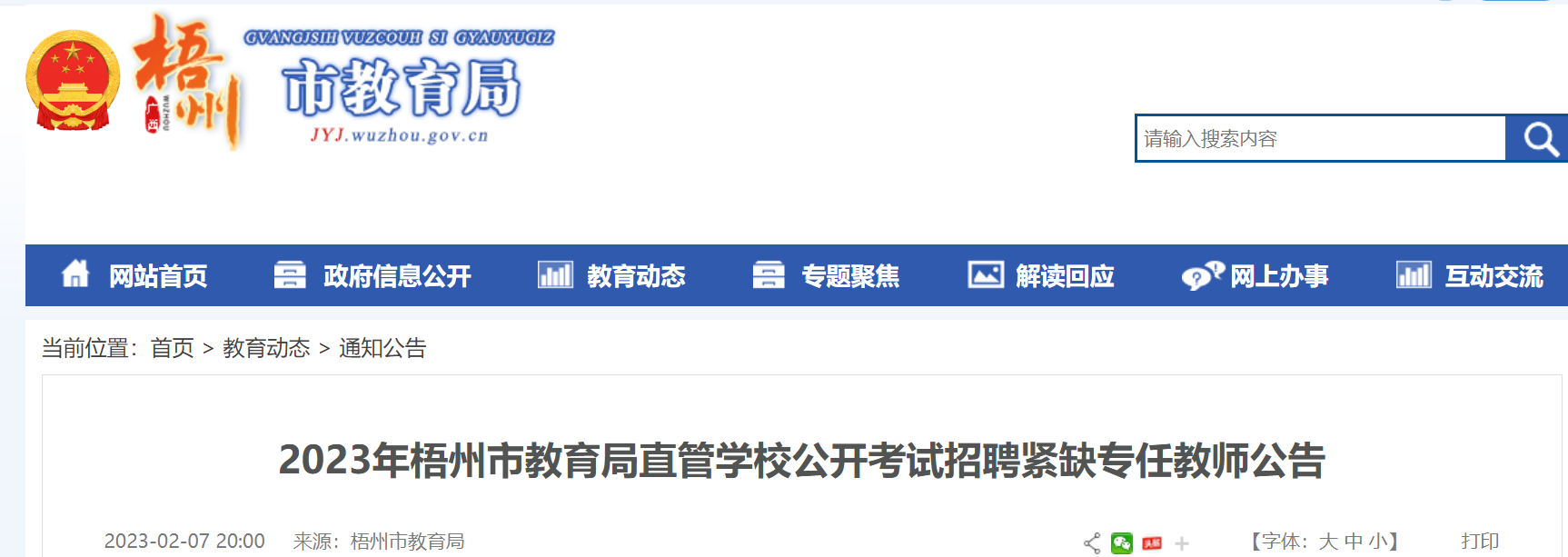 在梧州人才網(wǎng)、梧州市教育局網(wǎng)站公布招聘信息。