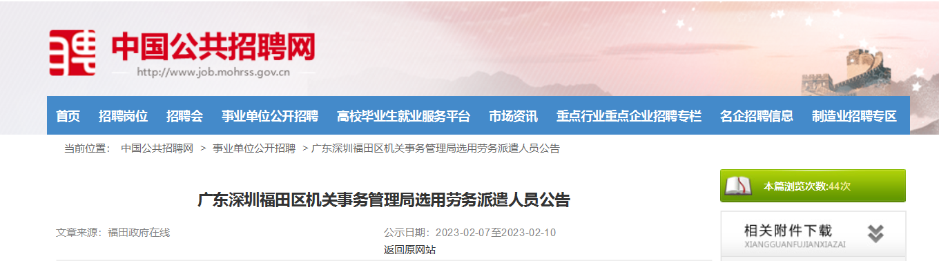 2023年廣東省深圳福田區(qū)機(jī)關(guān)事務(wù)管理局選用勞務(wù)派遣人員。報(bào)名時(shí)間:2023年2月7日至2023年2月10日下午6點(diǎn)前(逾期不受理);現(xiàn)將公告原文發(fā)布如下: