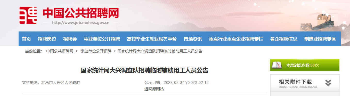 2023年北京國家統(tǒng)計(jì)局大興調(diào)查隊(duì)招聘臨時(shí)輔助用工人員。報(bào)名時(shí)間:2023年2月7日—2月12日?,F(xiàn)將公告原文發(fā)布如下: