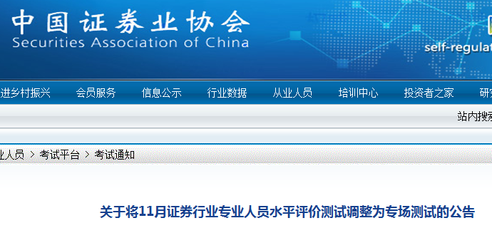 原文標(biāo)題:關(guān)于將11月證券行業(yè)專業(yè)人員水平評價測試調(diào)整為專場測試的公告