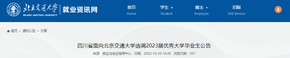 四川省面向北京交通大學(xué)選調(diào)2023屆優(yōu)秀大學(xué)畢業(yè)生公告