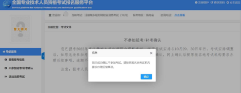 因考試安排調(diào)整,已報名繳費但決定不參加補考的報考人員須在11月2日至11月6日通過中國人事考試網(wǎng)的“網(wǎng)報平臺”進行網(wǎng)上確認。網(wǎng)上確認后,無法修改、撤回,由省中心辦理退費工作,部中心統(tǒng)一辦理合格成績有效期延長工作。