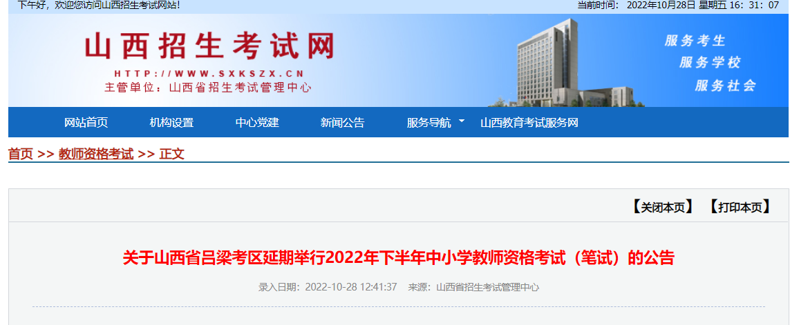 原文標(biāo)題:關(guān)于山西省呂梁考區(qū)延期舉行2022年下半年中小學(xué)教師資格考試(筆試)的公告