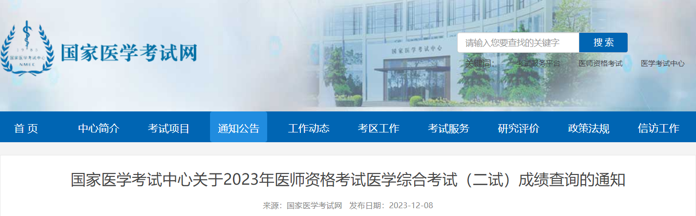 即日起(12月8日起),國(guó)家醫(yī)學(xué)考試中心將為已綁定公眾號(hào)的考生推送2023年中醫(yī)助理醫(yī)師醫(yī)學(xué)綜合考試二試成績(jī),同時(shí)開通網(wǎng)上查詢渠道,考生可通過國(guó)家醫(yī)學(xué)考試中心小程序、微信公眾號(hào)或電話渠道查詢考試成績(jī)??忌?wù)系統(tǒng)的成績(jī)單打印服務(wù)將于次日開通。