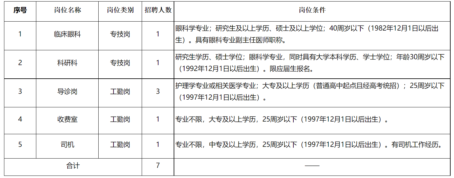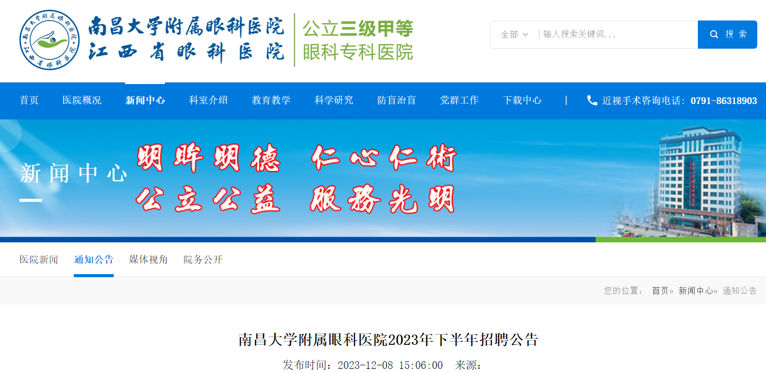 2023下半年江西南昌大學(xué)附屬眼科醫(yī)院招聘7人,報名時間:即日起至2023年12月17日。現(xiàn)將招聘公告原文發(fā)布如下: