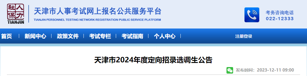 2024年天津定向選調(diào)生面試準(zhǔn)考證打印時間在2024年1月30日9:00至2月2日期間!