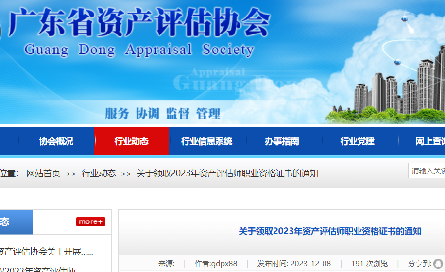 按照中國資產(chǎn)評估協(xié)會要求,廣東省資產(chǎn)評估協(xié)會(以下簡稱省評協(xié))將發(fā)放2023年資產(chǎn)評估師職業(yè)資格證書(以下簡稱證書)?,F(xiàn)將領(lǐng)取證書有關(guān)事項(xiàng)通知如下: